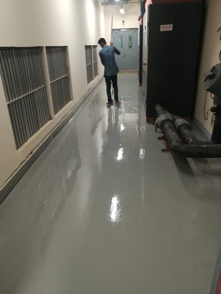 Durable and glossy industrial-grade flooring for commercial and factory spaces.